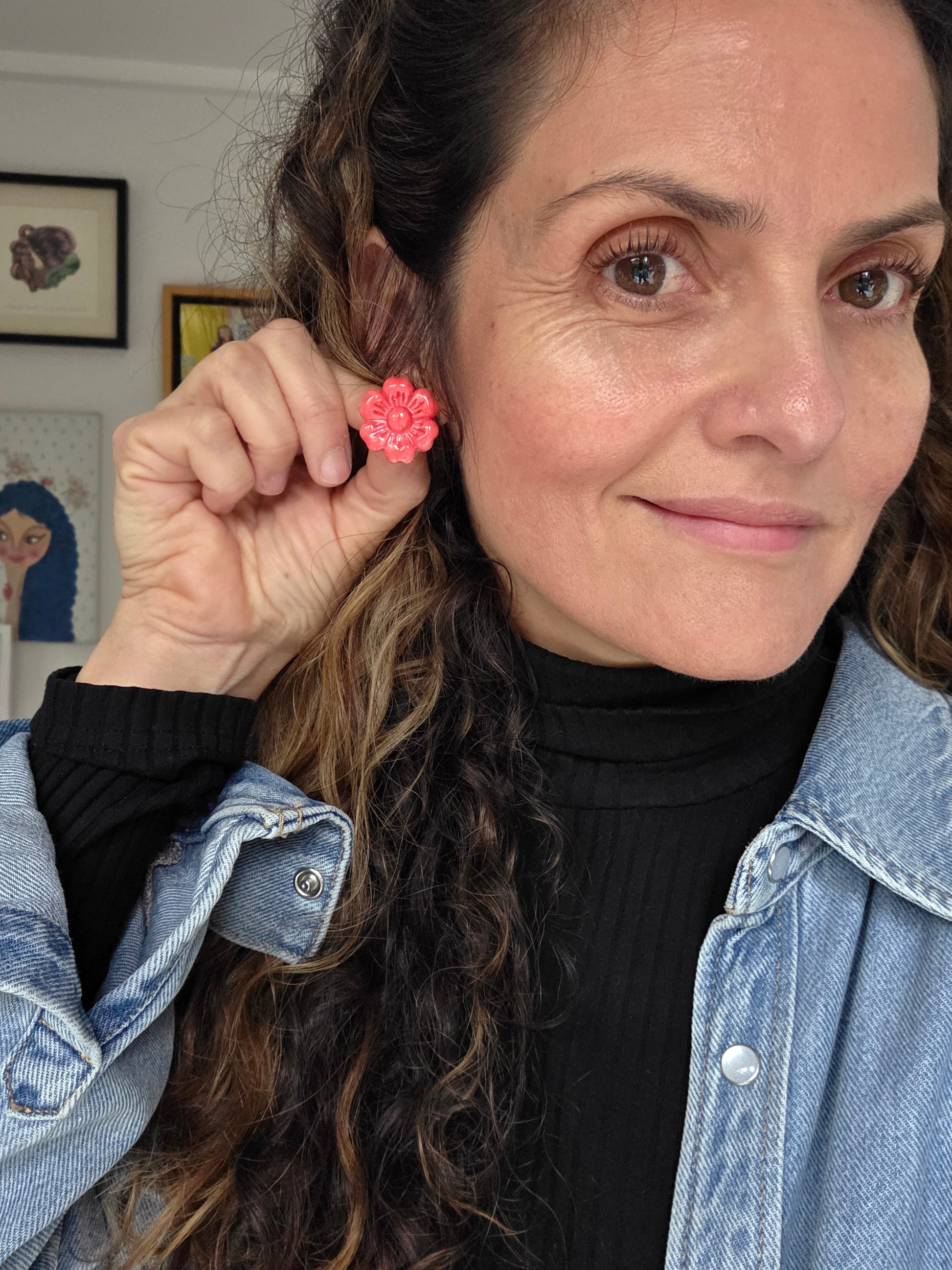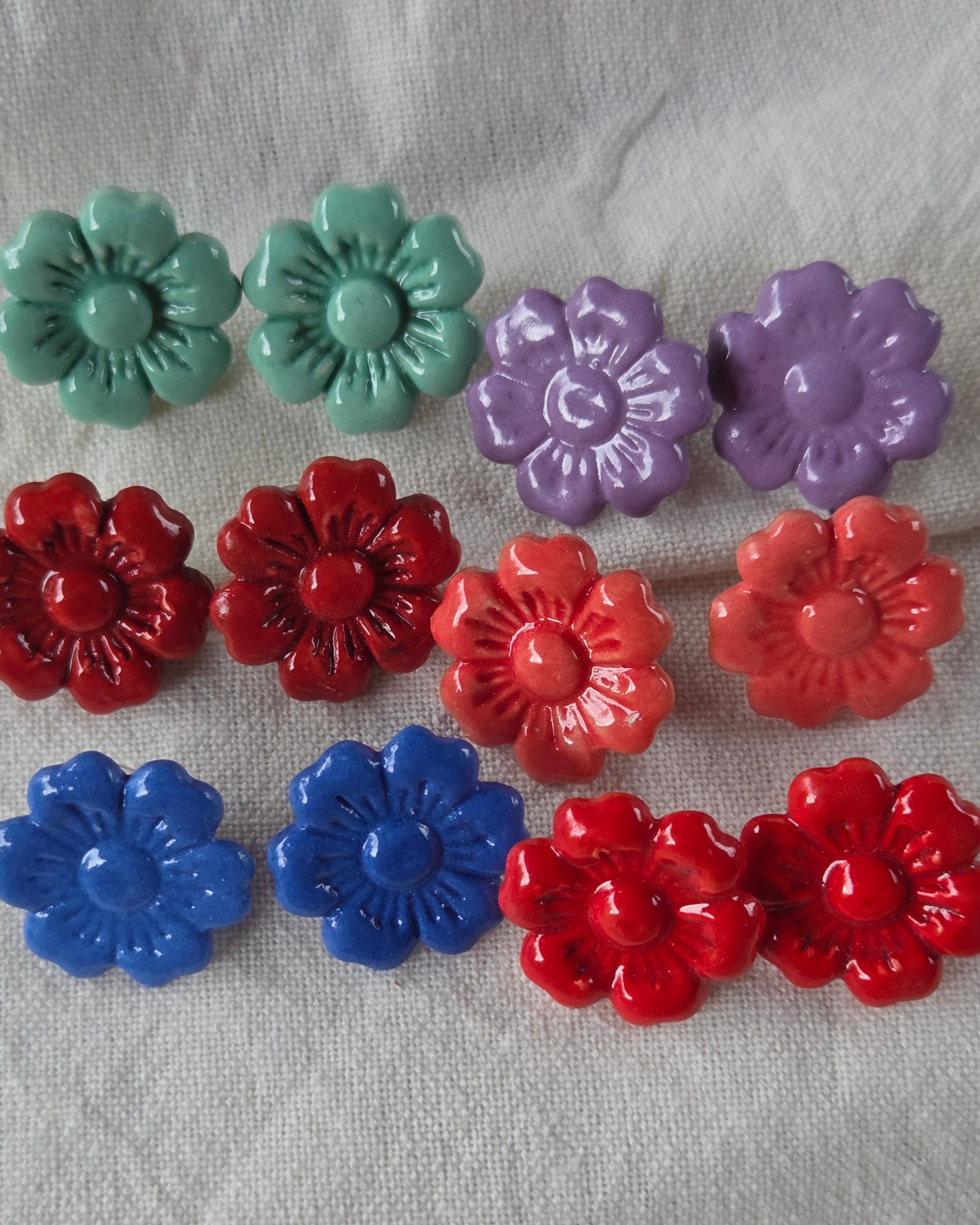 Delicados aros hechos a mano en cerámica esmaltada y palito de acero quirúrgico.