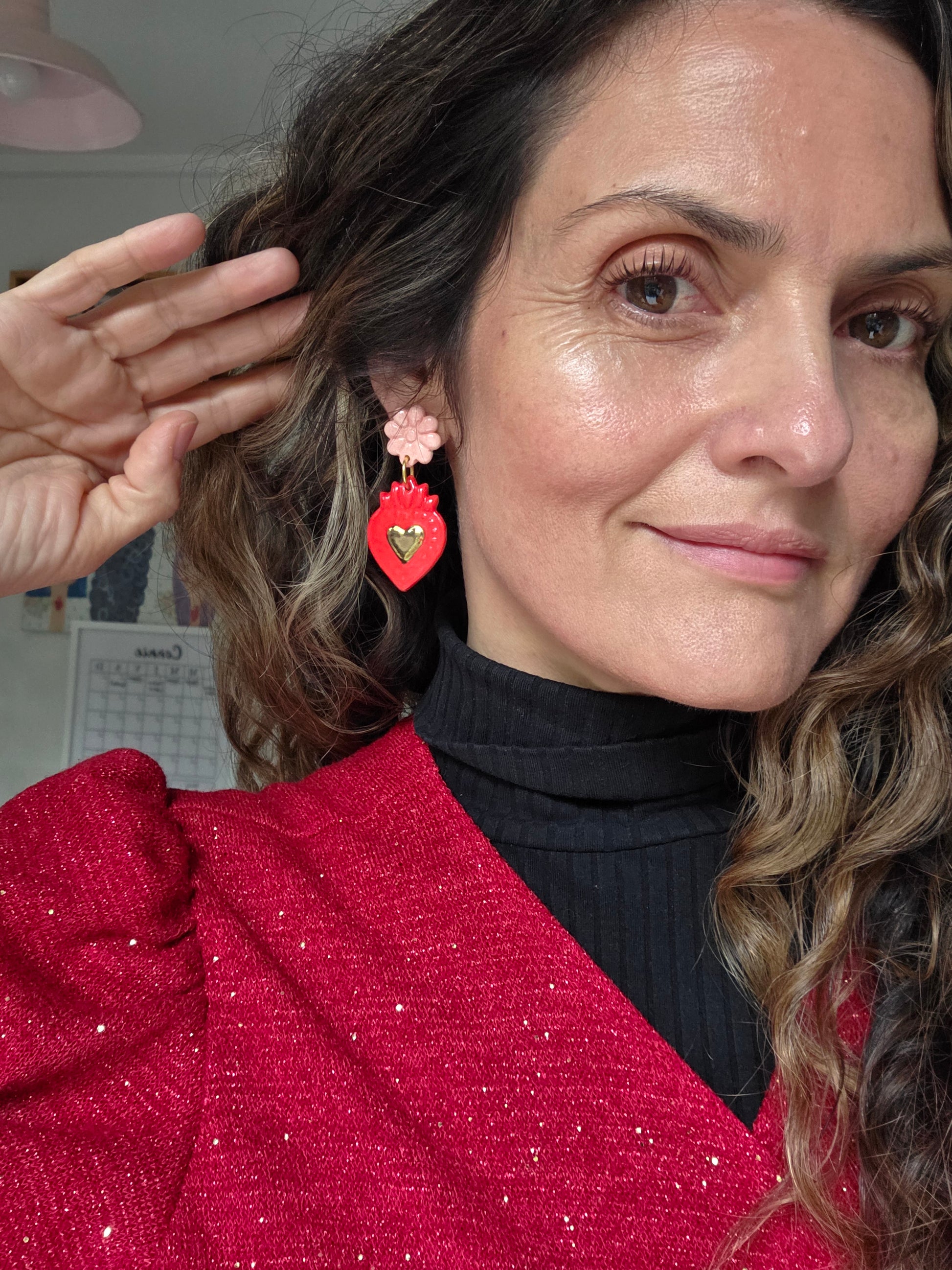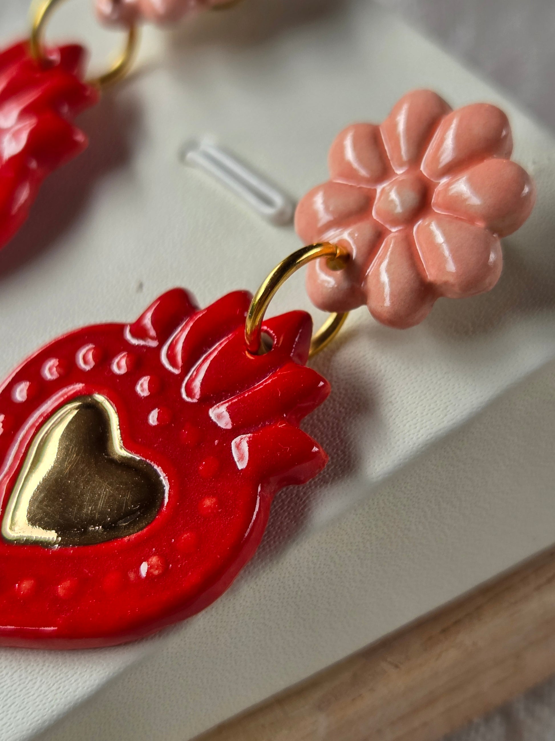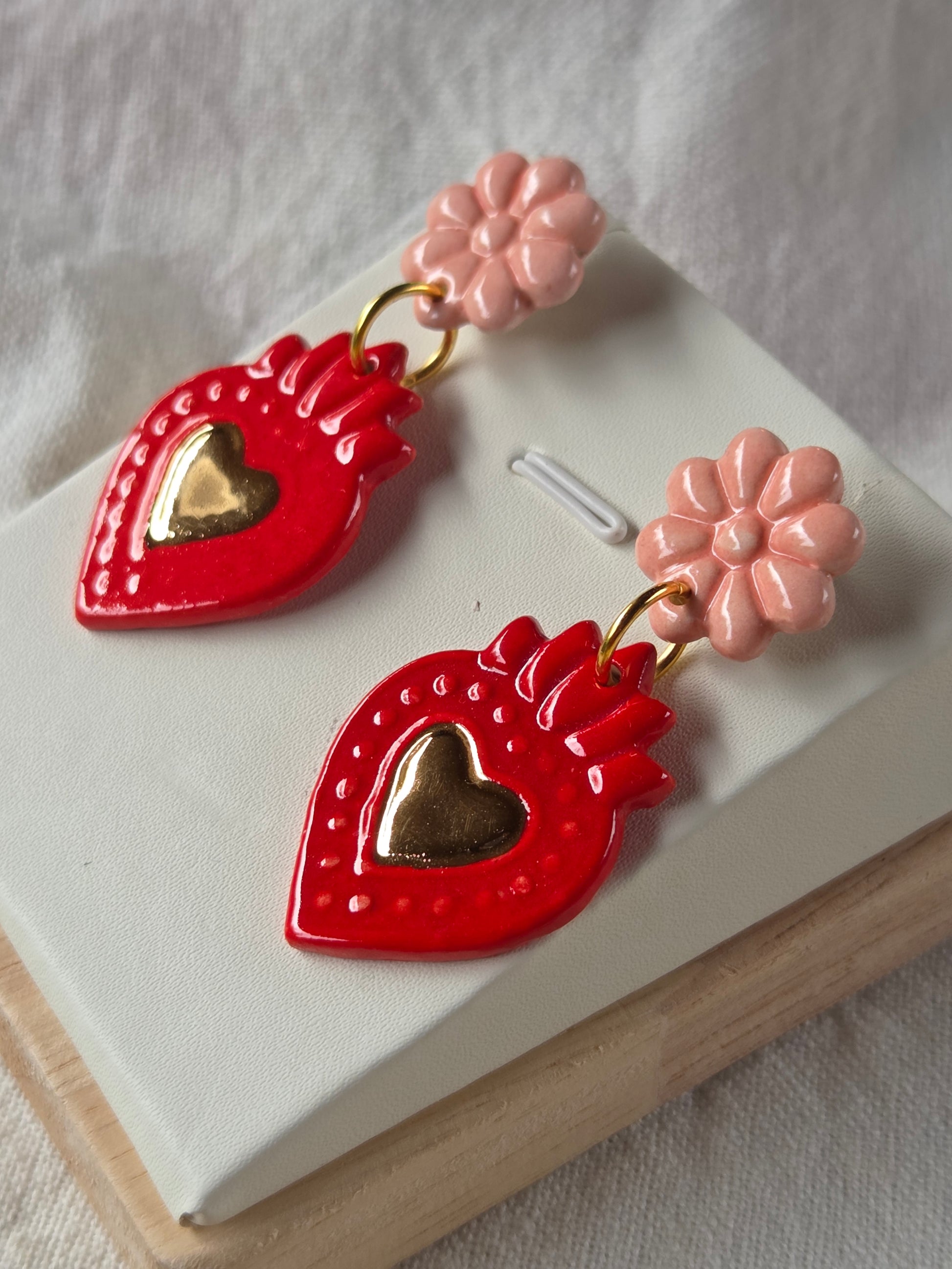 Sagrado corazón rojo/rosado y oro L
