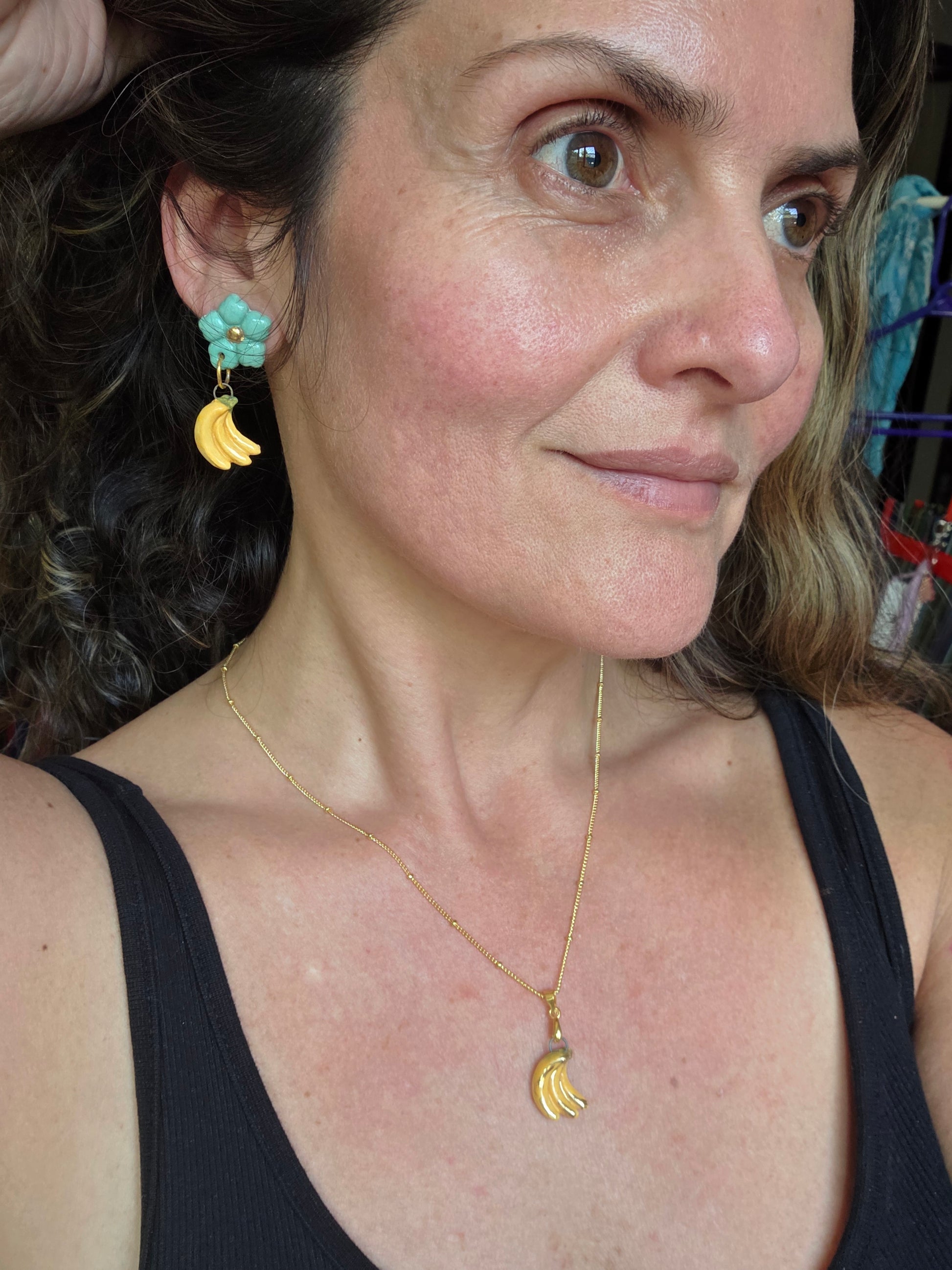 Dije de plátano en racimo con oro