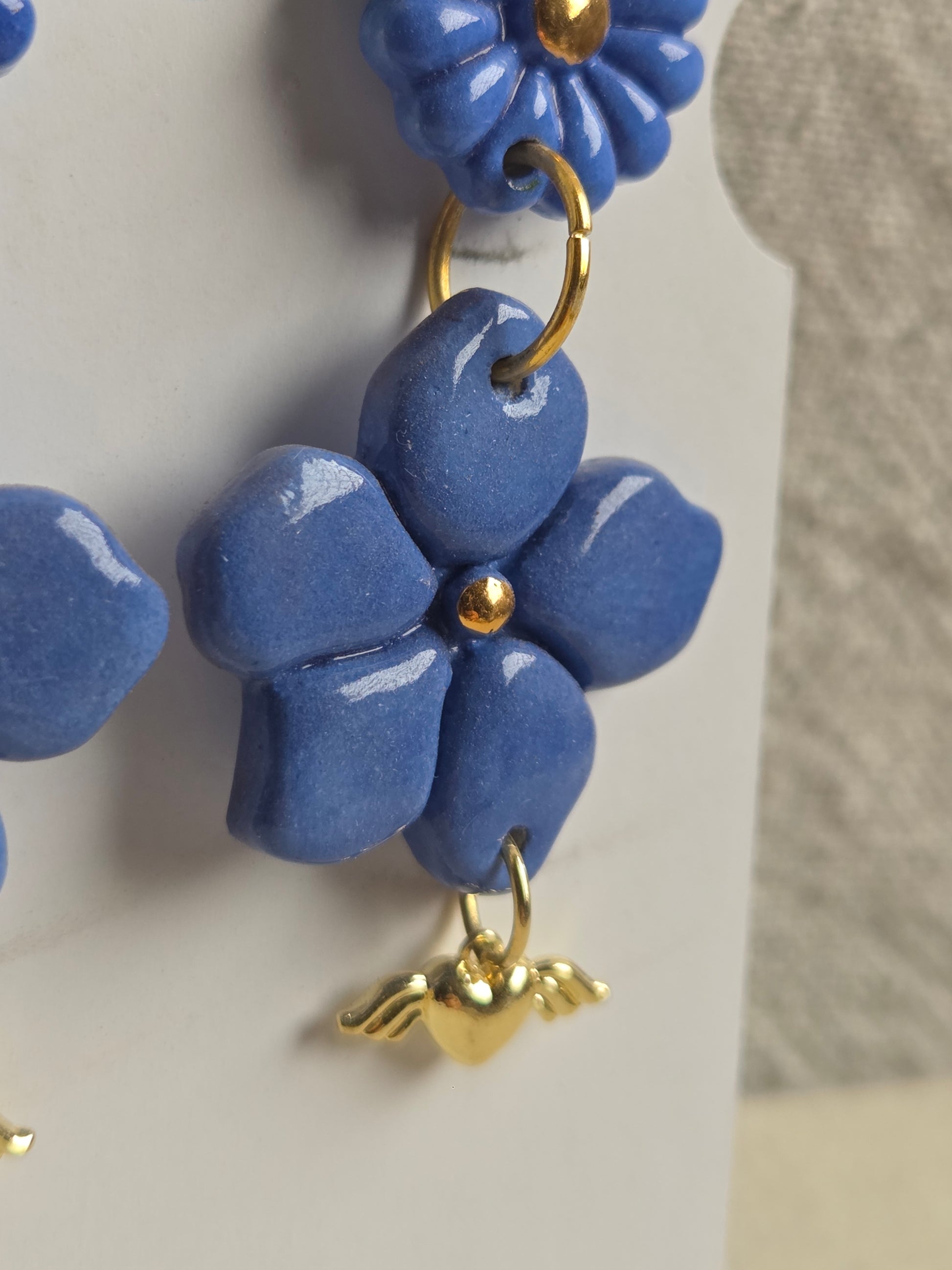 Aros 2 piezas azul/ oro + corazón alado