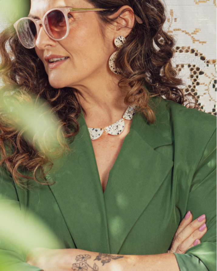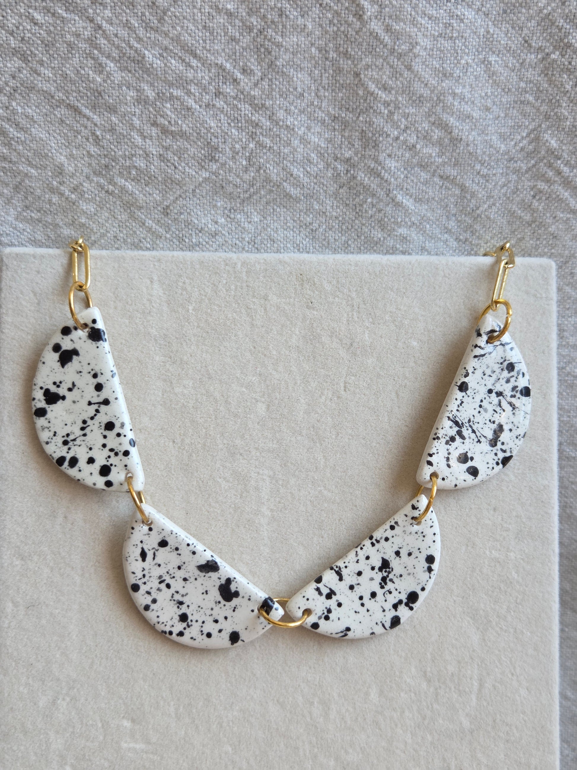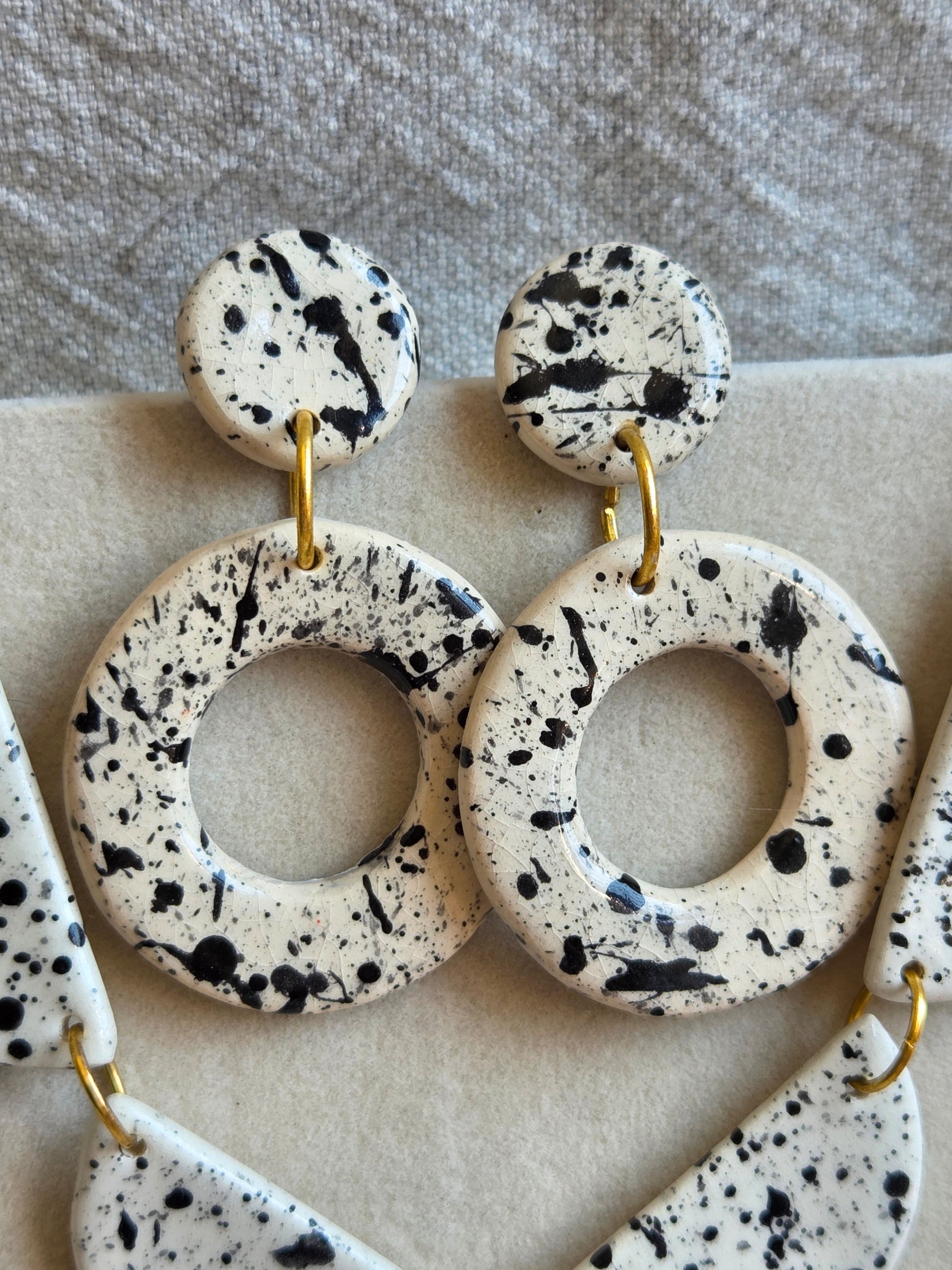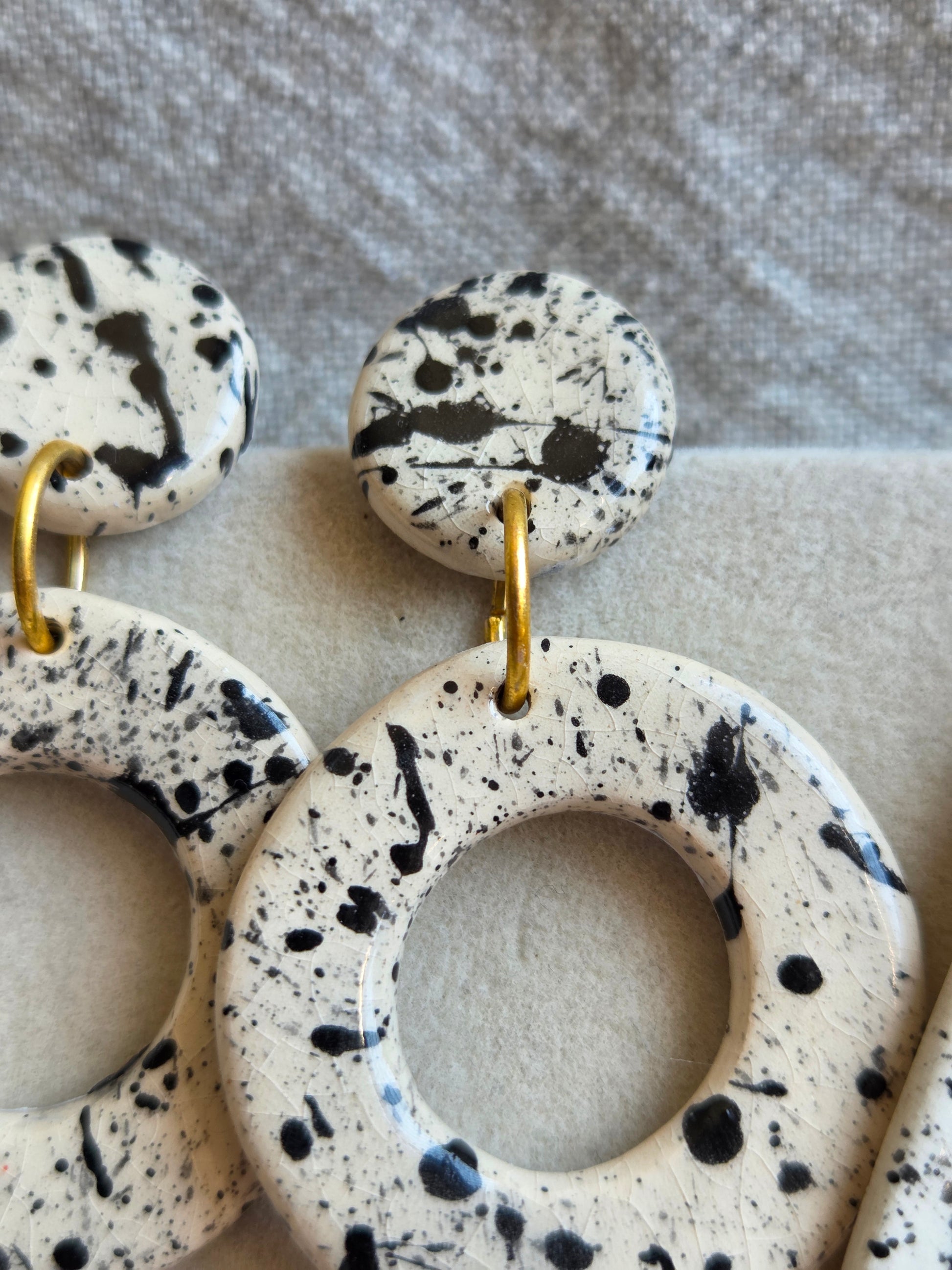 Aros/ Collar blanco con chispas negrad con cadena de oro, juntos o separados.