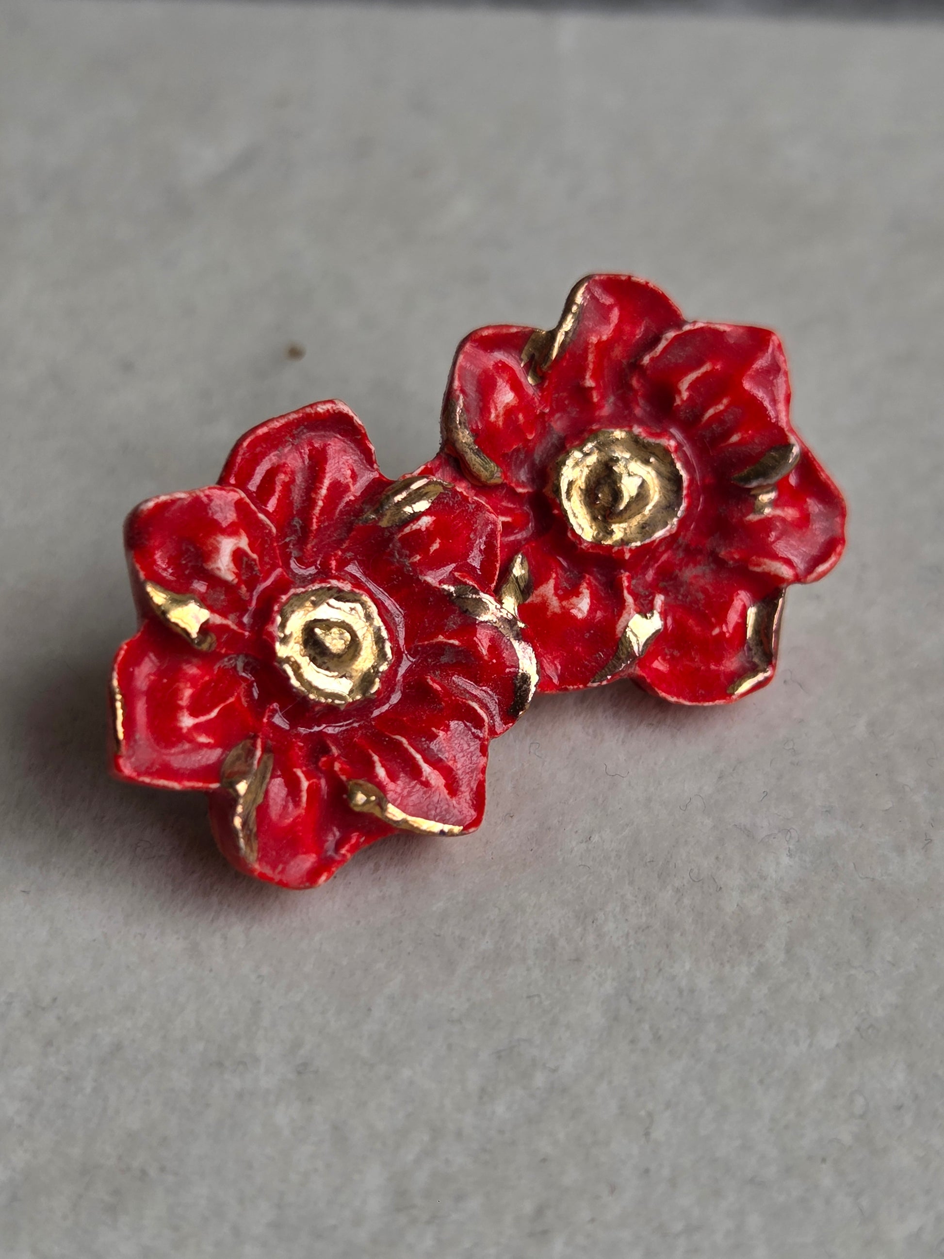 Aros flor roja con oro 1 pieza