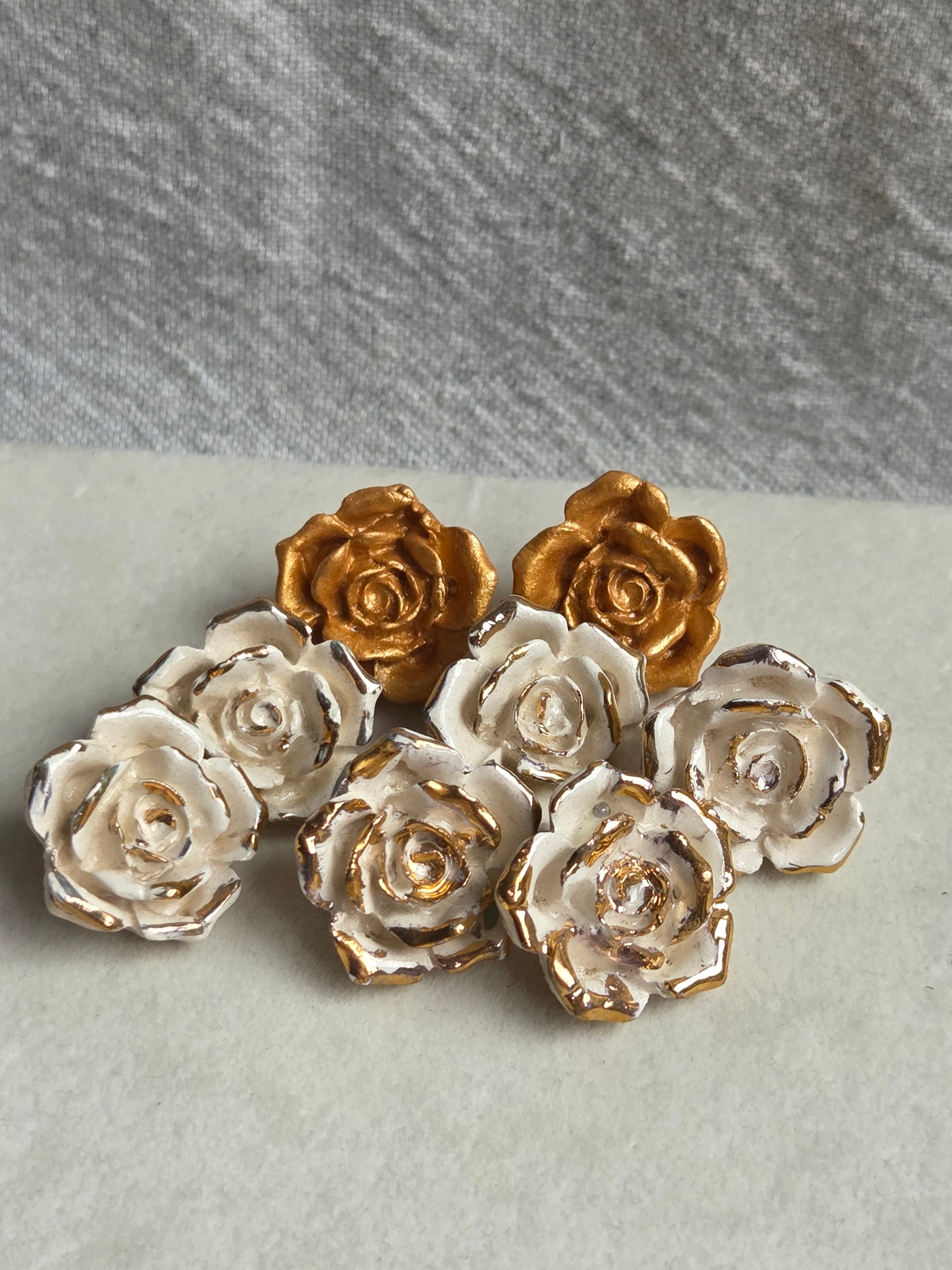 Aros Rosas blancas 1 pieza con oro