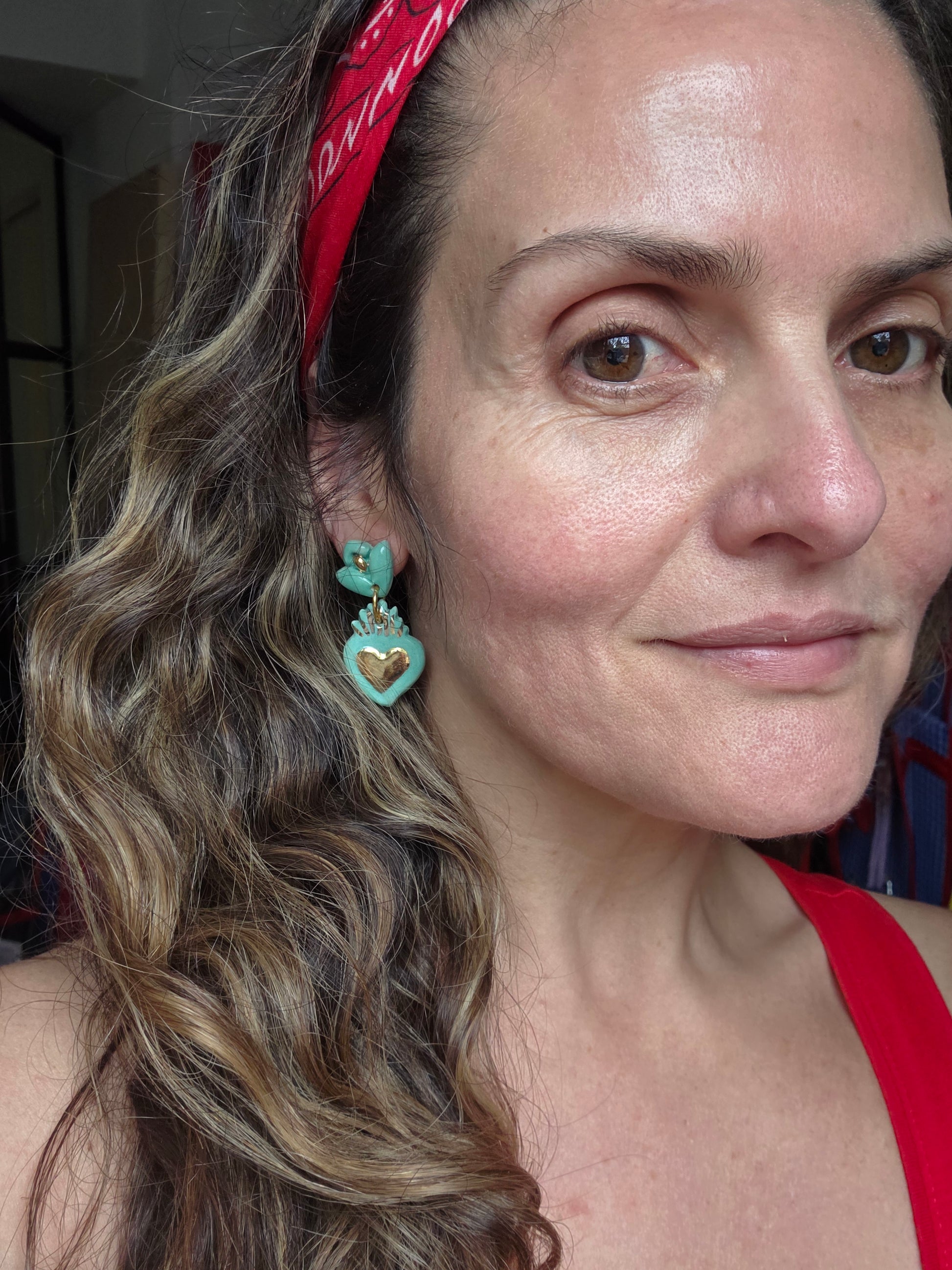 Aros sagrado corazón 2 piezas con oro 1 color