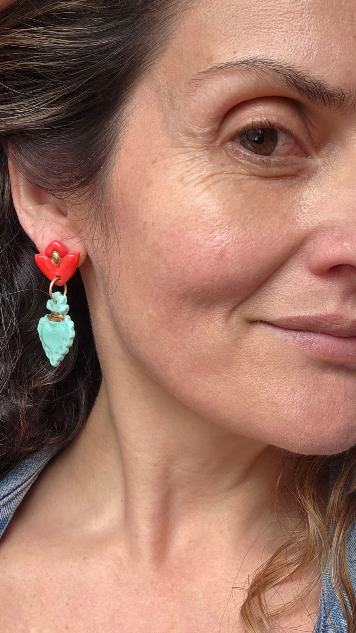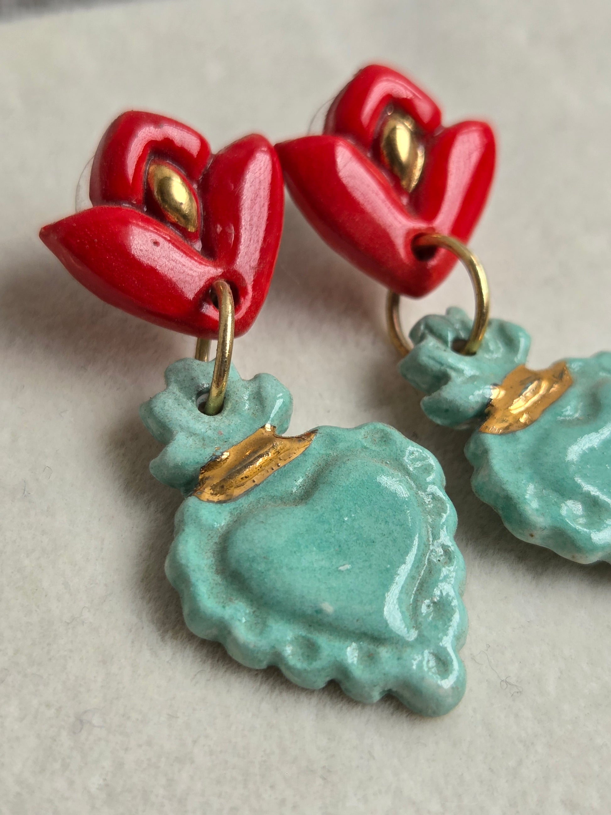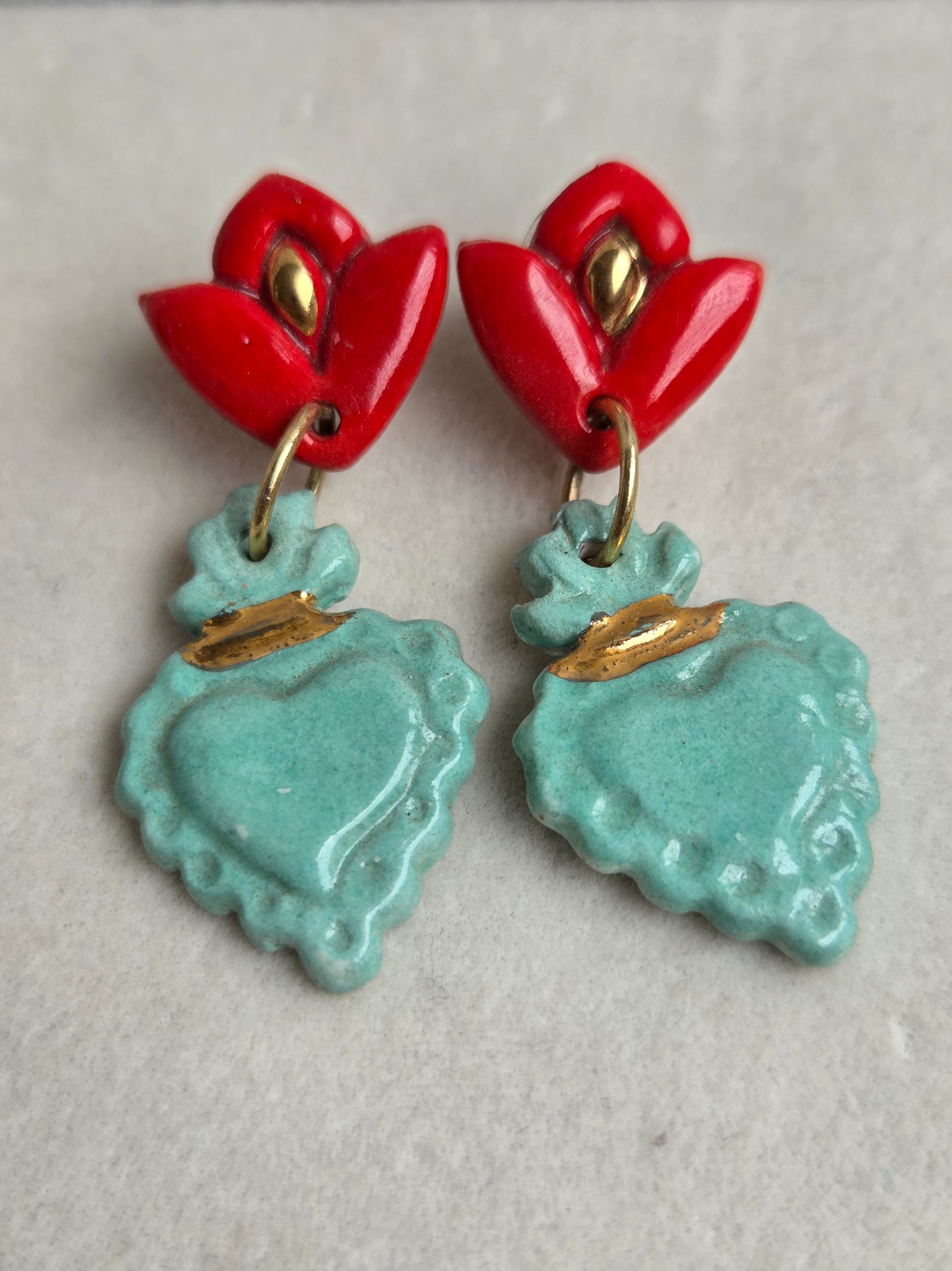 Aros sagrado corazón turquesa, rojo y oro