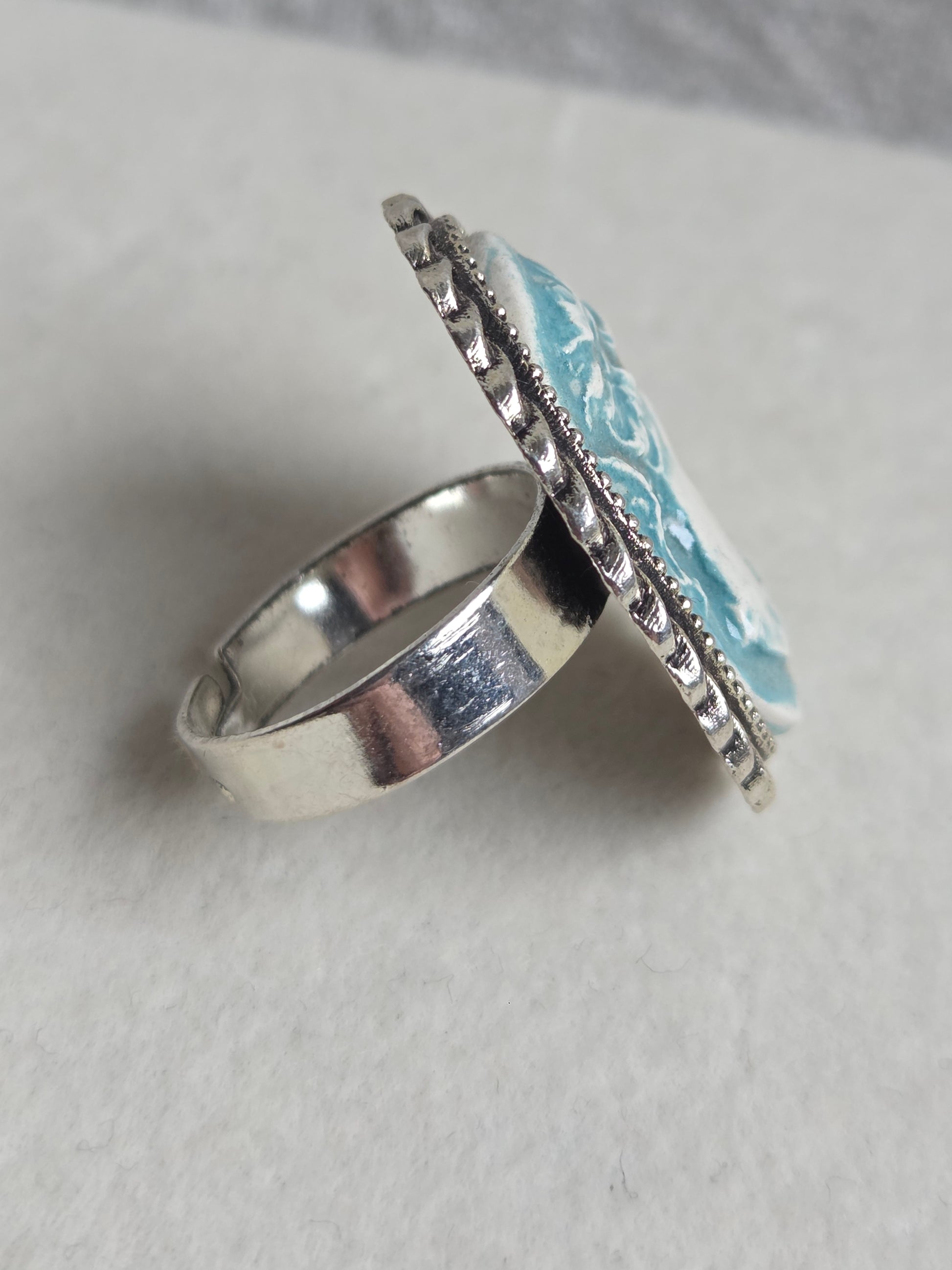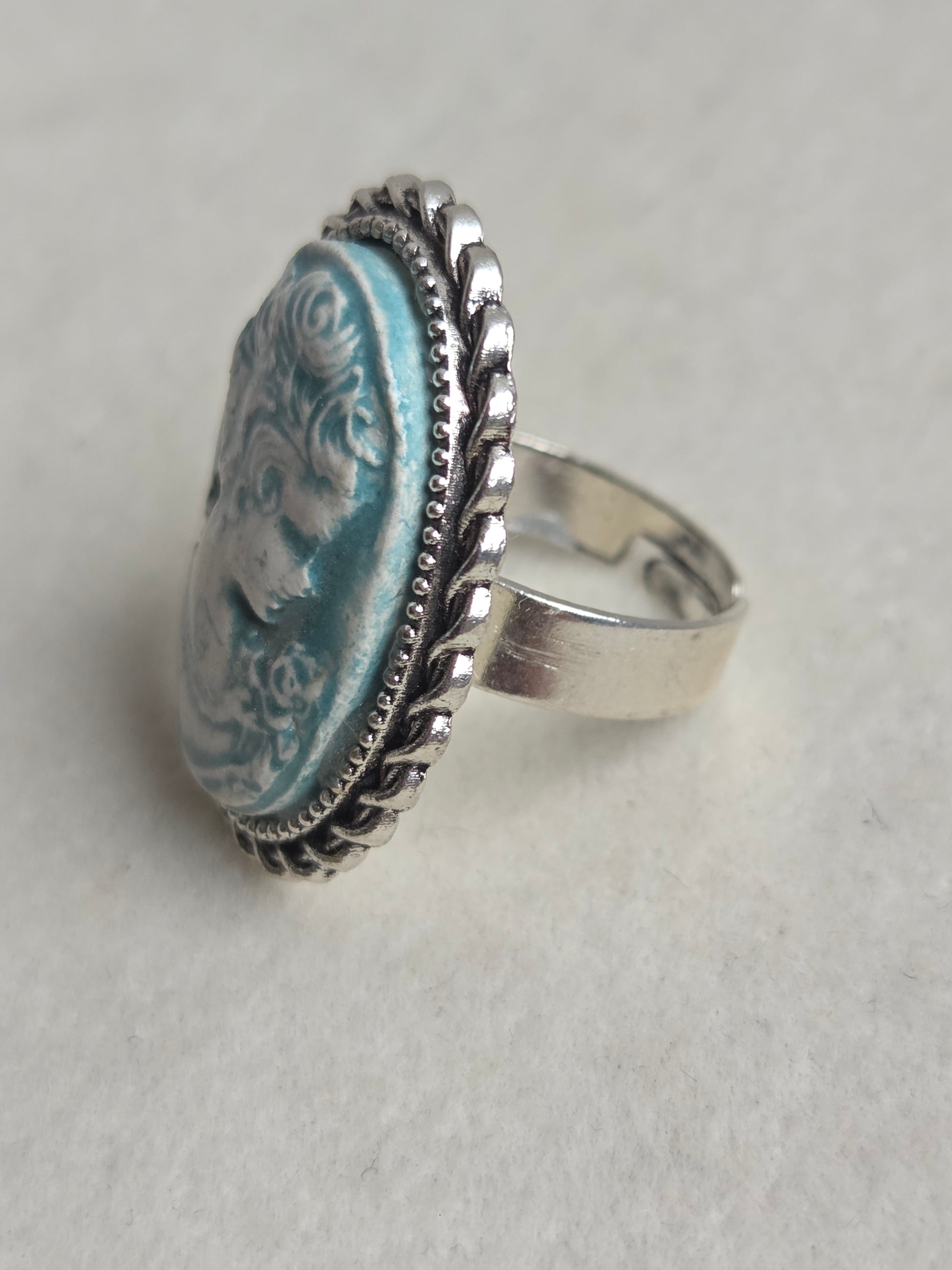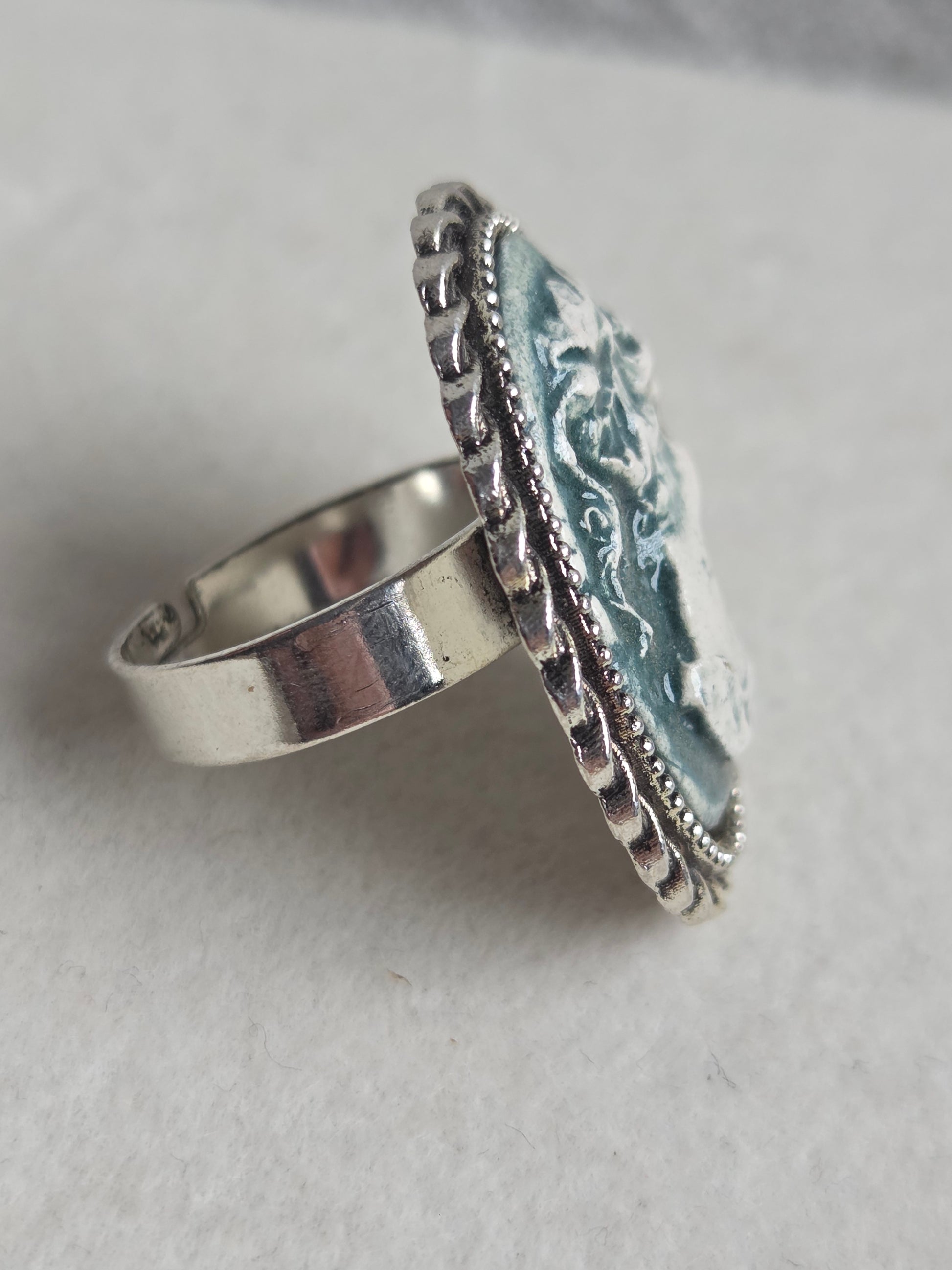 Anillos vintage ajustables plateados en tonos azules y verdes