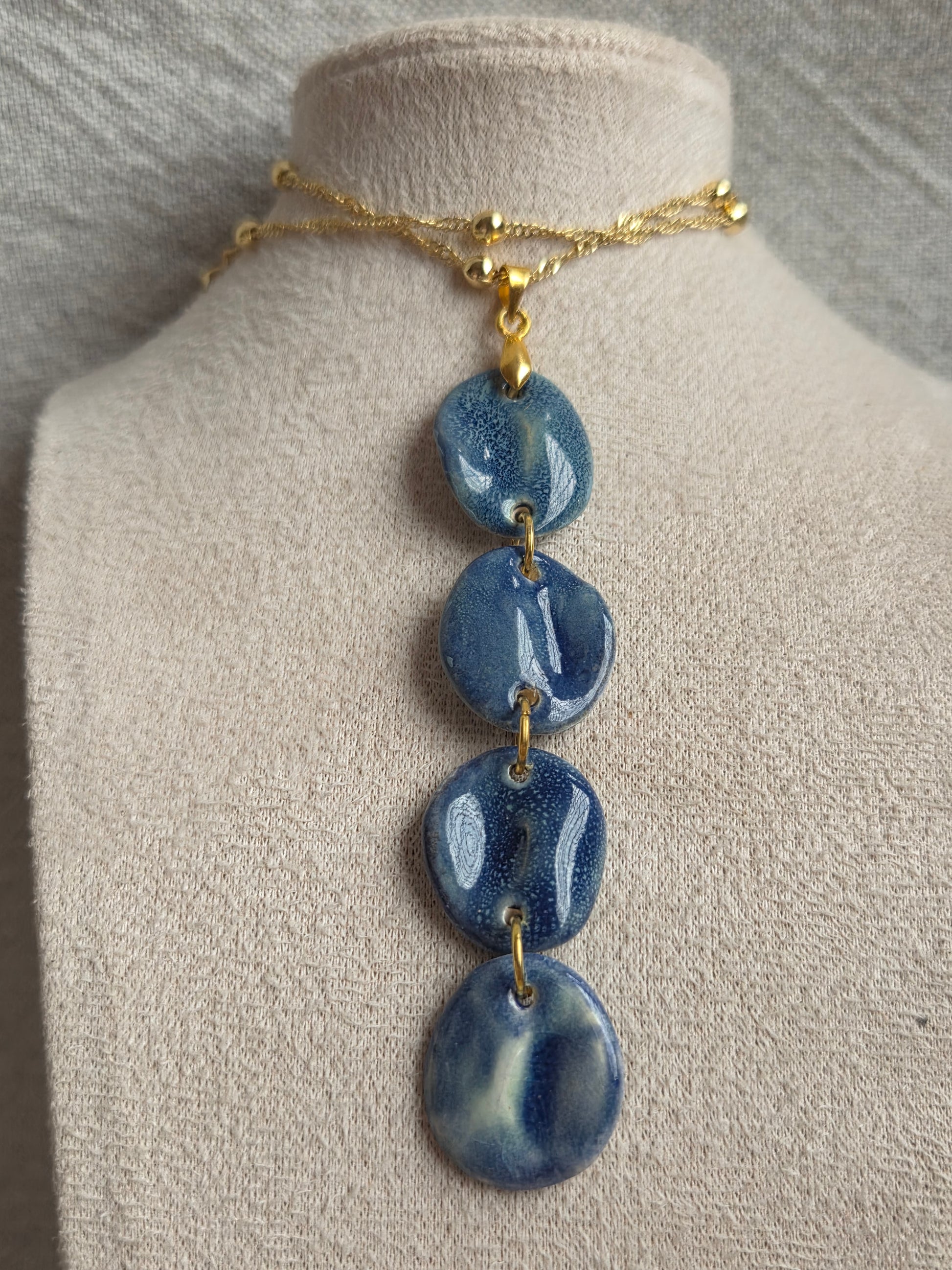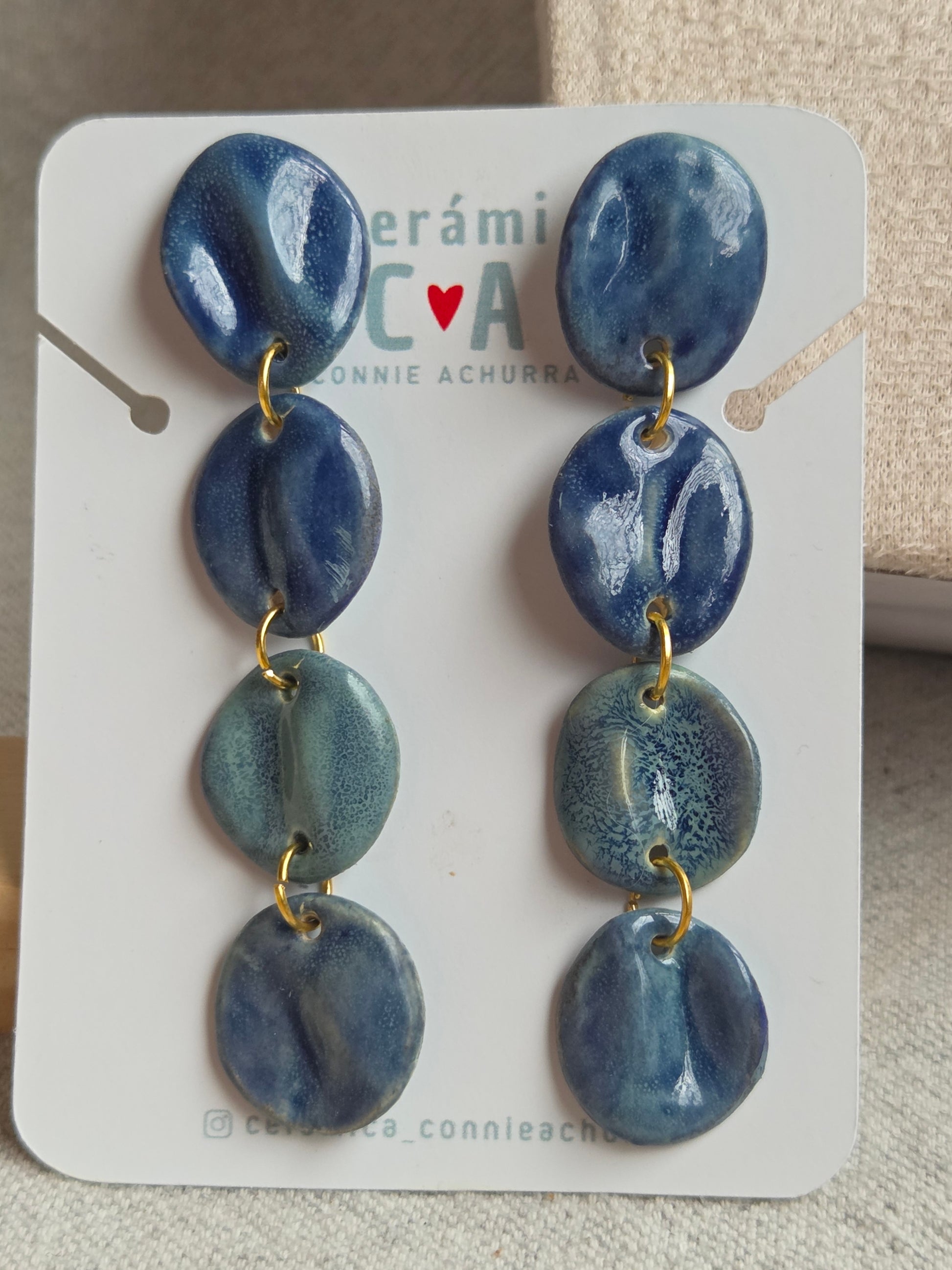 Aros/ Collar pétalos azul mar con cadena de oro, juntos o separados.