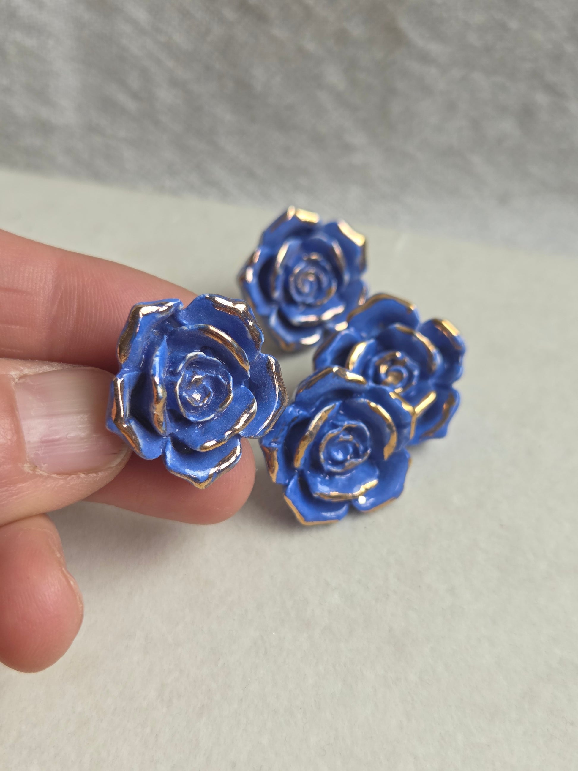 Aros Rosas azules 1 pieza con oro