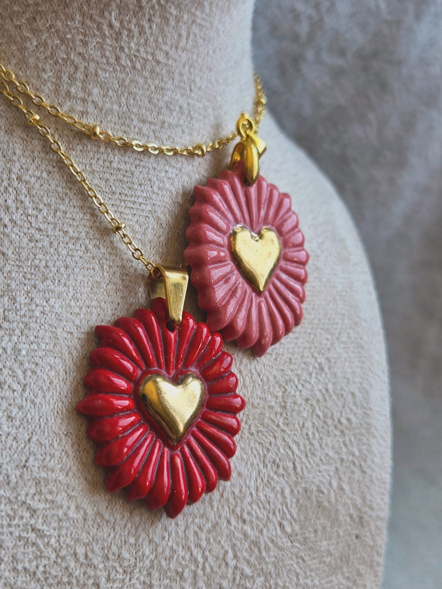 Medallas/ amuletos corazón de los rayos con oro y cadena